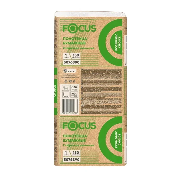 Бумажные полотенца Focus Economic choice листовые, 1 слой, белые, 150шт, Z-сложения, 21.5х24см, 5076390