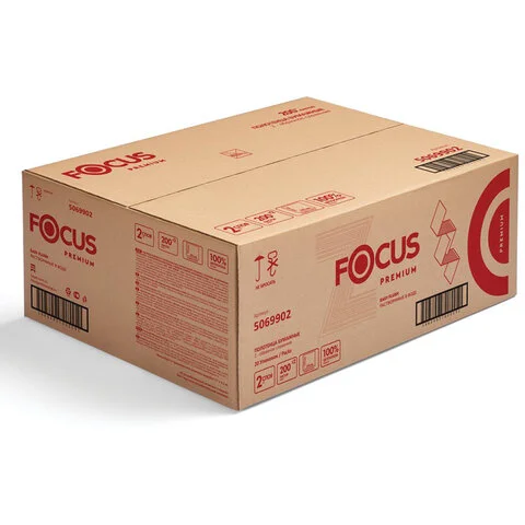 Бумажные полотенца Focus Premium 5069902/5083802, листовые, Z-сложение, 200шт, 2 слоя, белые
