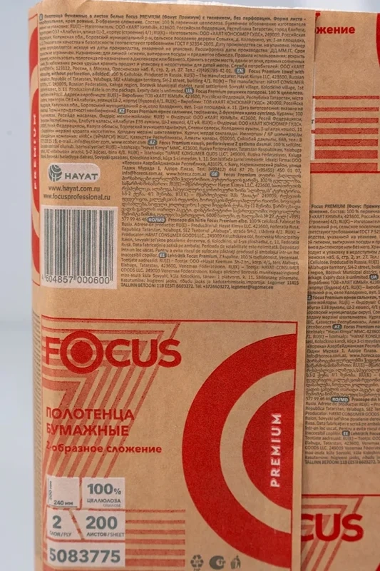 Бумажные полотенца Focus Premium 5083775, листовые, Z-сложение, 200шт, 2 слоя, белые