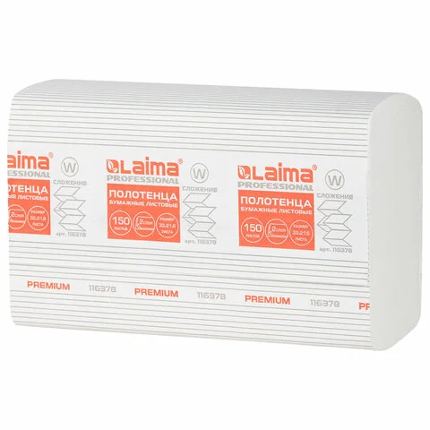 Бумажные полотенца Laima Premium H2, листовые, 2 слоя, 150шт, 21 пачка