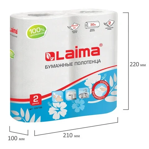 Бумажные полотенца Laima 128726, в рулоне, белые, 30м, 2 слоя, 2 рулона
