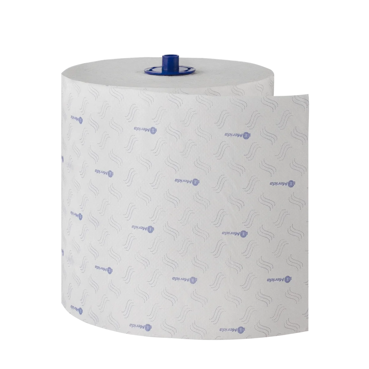 Бумажные полотенца Merida BP4404 в рулоне, Топ Принт Автоматик Макси, 2 слоя, белые с синим рисунком, 200м, 6шт/уп