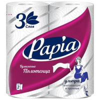 Отзывы о «Бумажные полотенца Papia 3 слоя, 2 рулона, 10,8м, белые, 5081504»