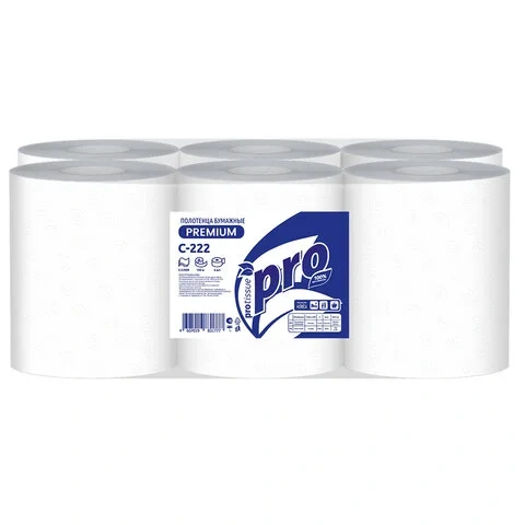 Полотенца бумажные рулонные PROtissue H1 2-слойные белые 6 рулонов по 150 метров (С222)
