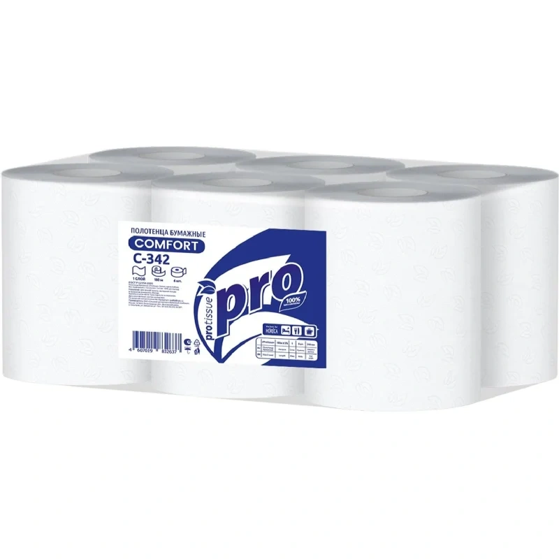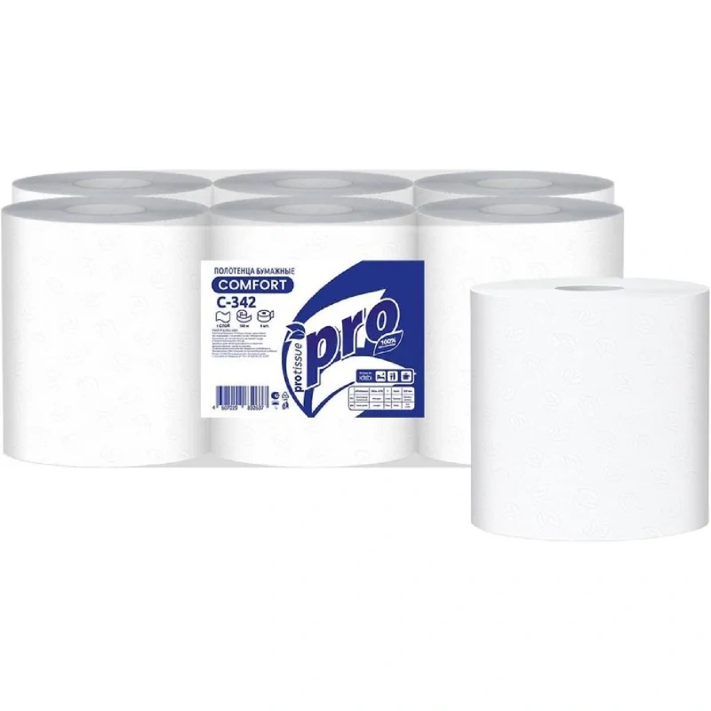 Бумажные полотенца Protissue С342 в рулоне, 1 слой, 180м, белые, без перфорации