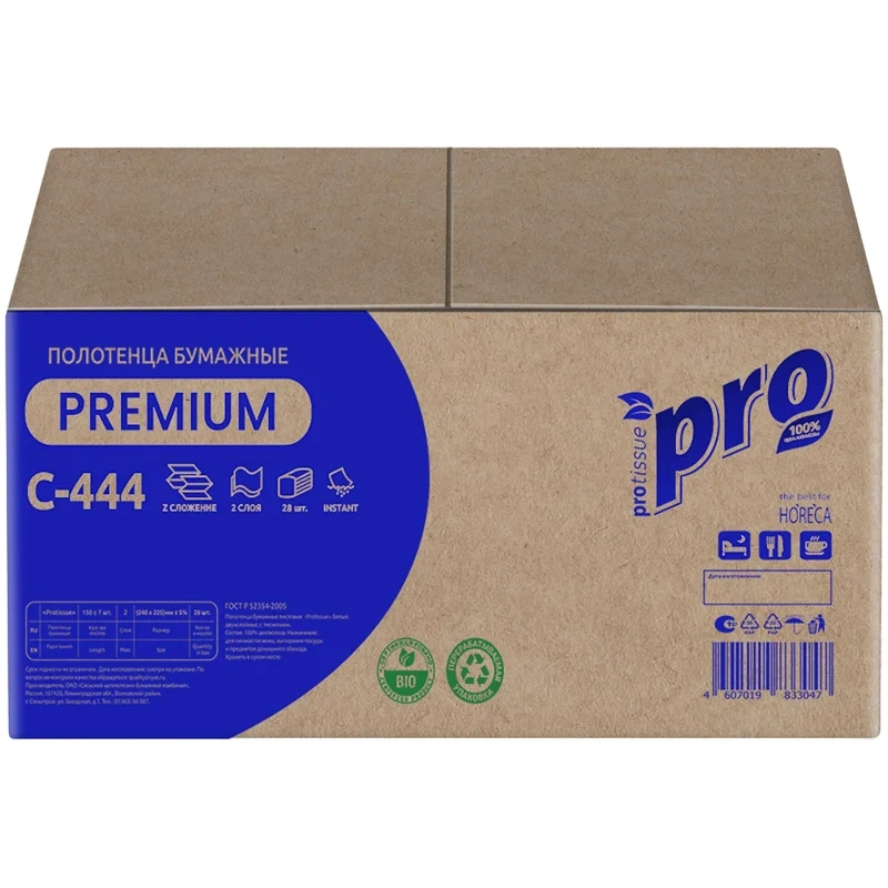 Полотенца бумажные листовые PROtissue H2 Z-сложение 2-слойные белые 28 пачек по 150 листов (C444)