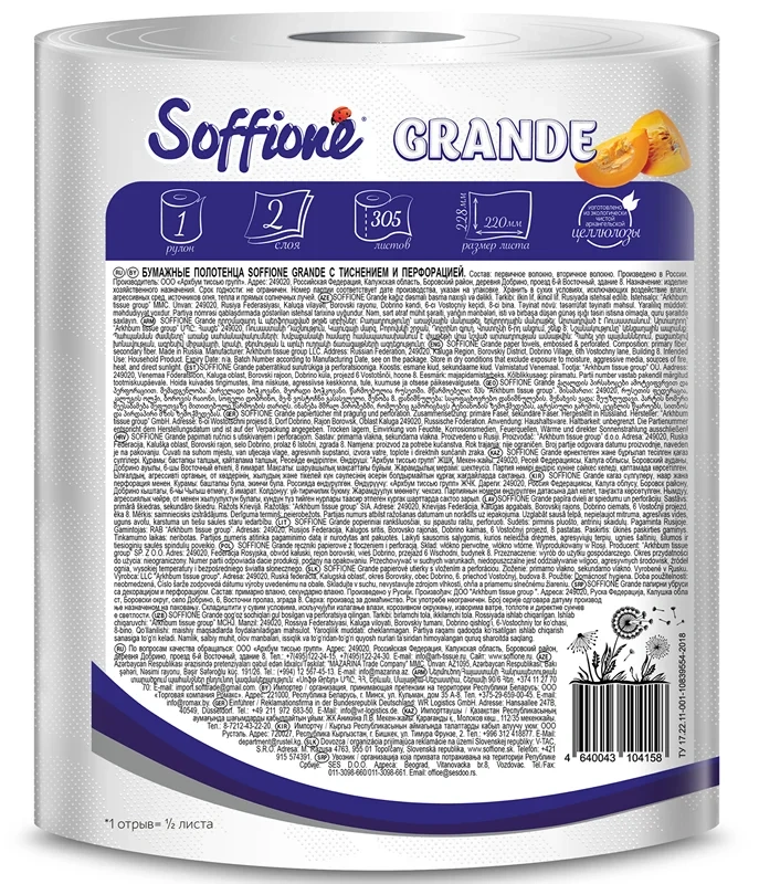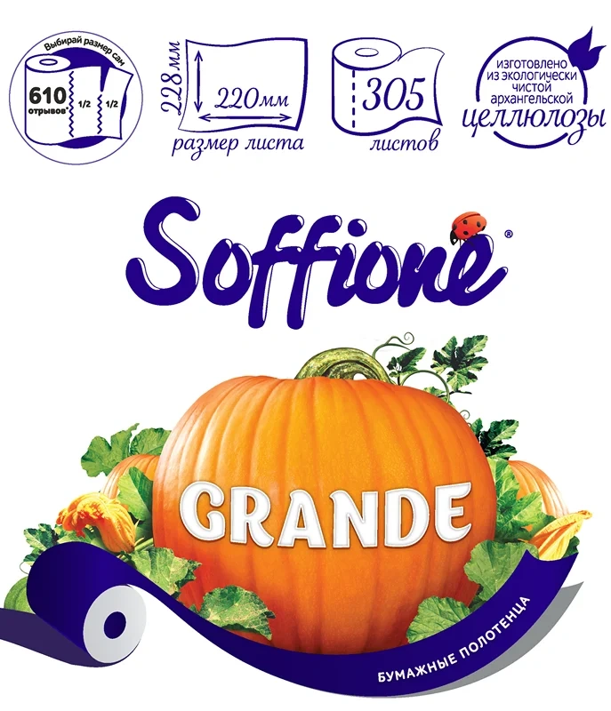 Бумажные полотенца Soffione Grande двуслойные 1 рулон, 305л