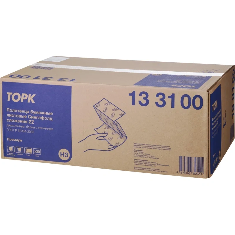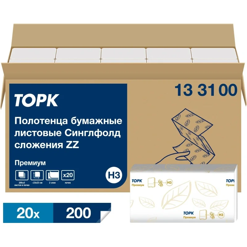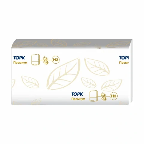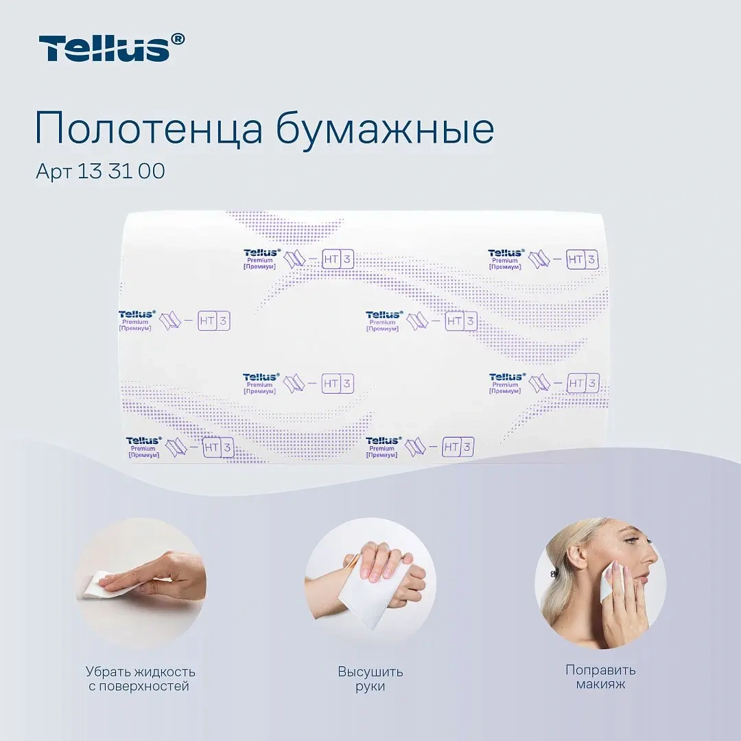 Бумажные полотенца Tellus (tork) Premium Singlefold H3, 133100, листовые, белые, V-укладка, 200шт, 2 слоя