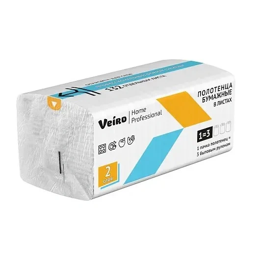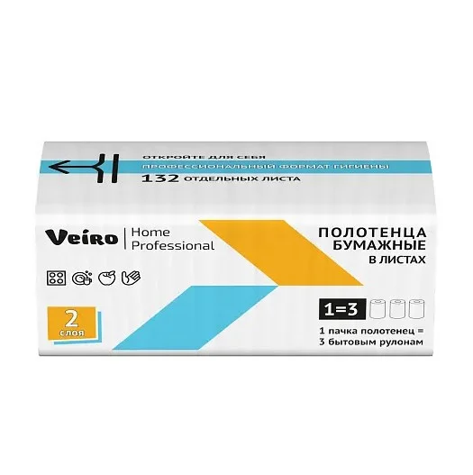 Полотенца бумажные Veiro Home Professional 2 слойные белые V сложение 132 листов, профессиональное решение для покупателей с высокими требованиями к гигиене и потребительским свойствам продукции. Обладают высокой впитывающей способностью, полное удаление влаги и грязи с любых поверхностей.