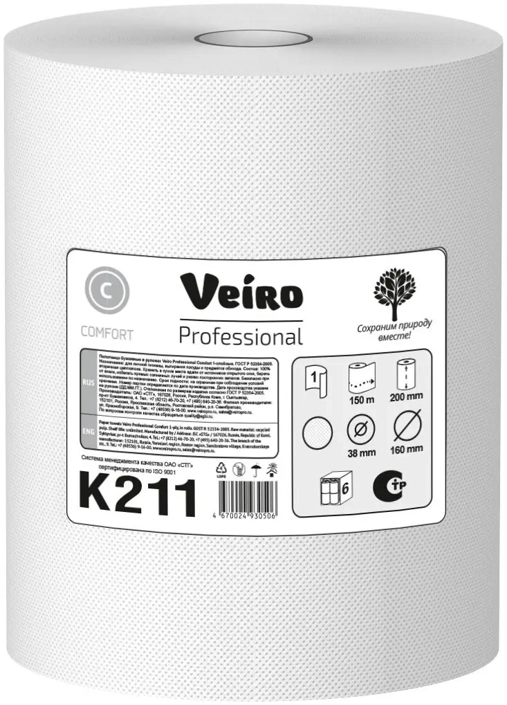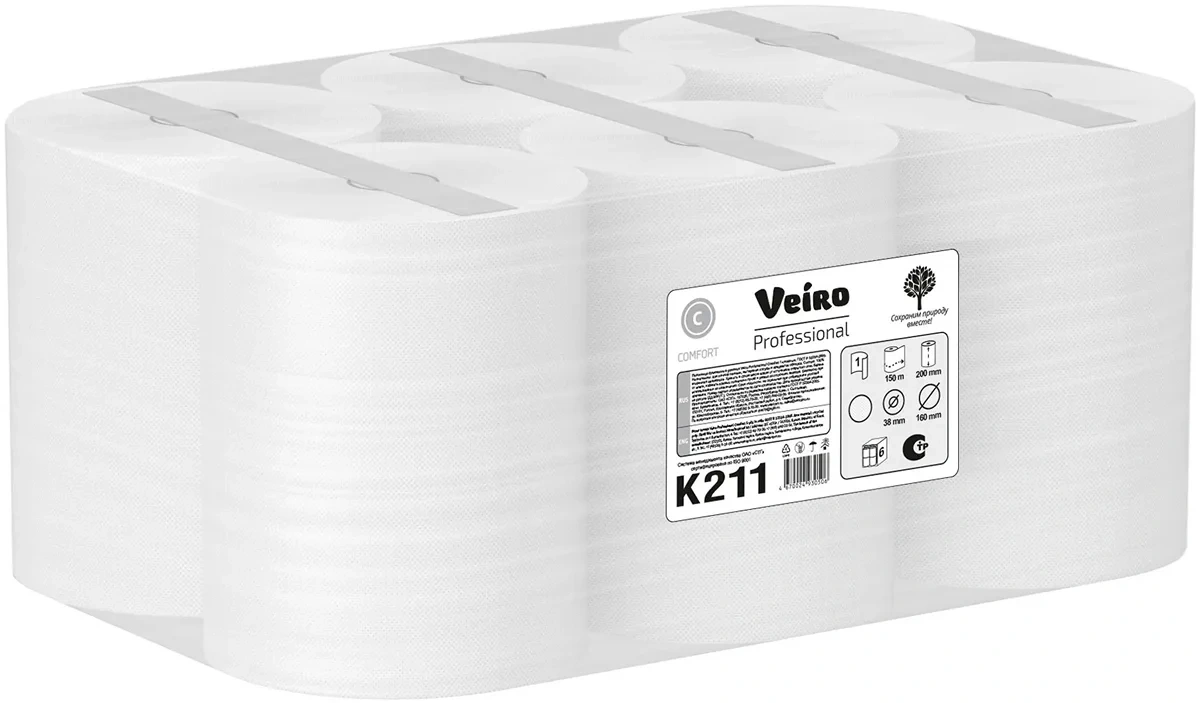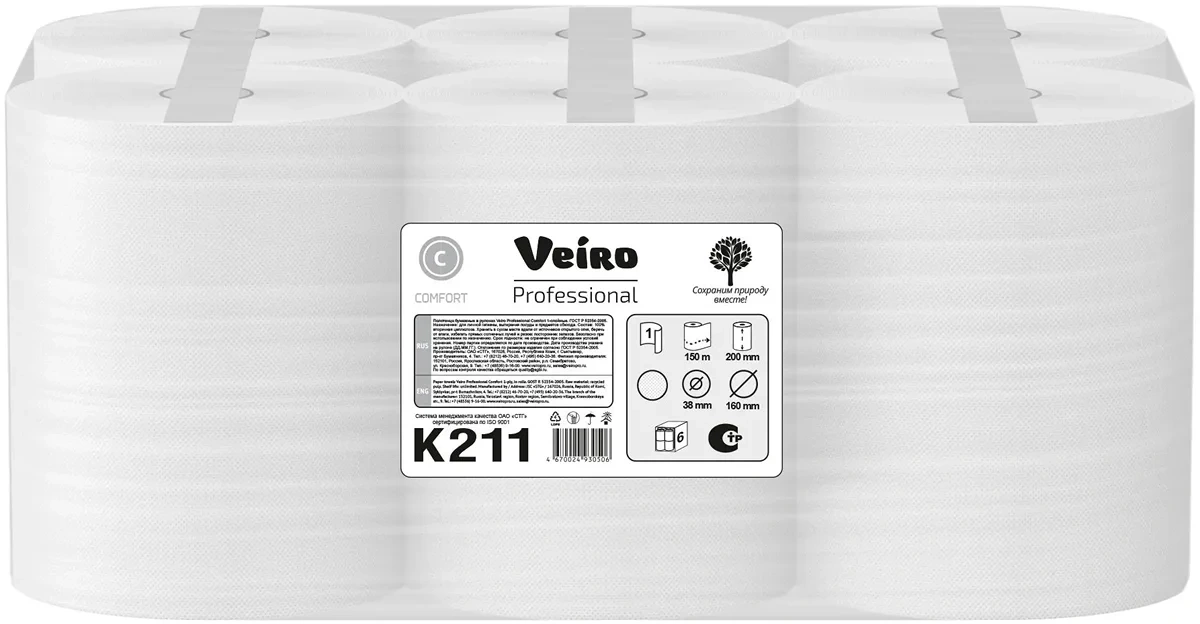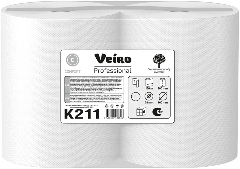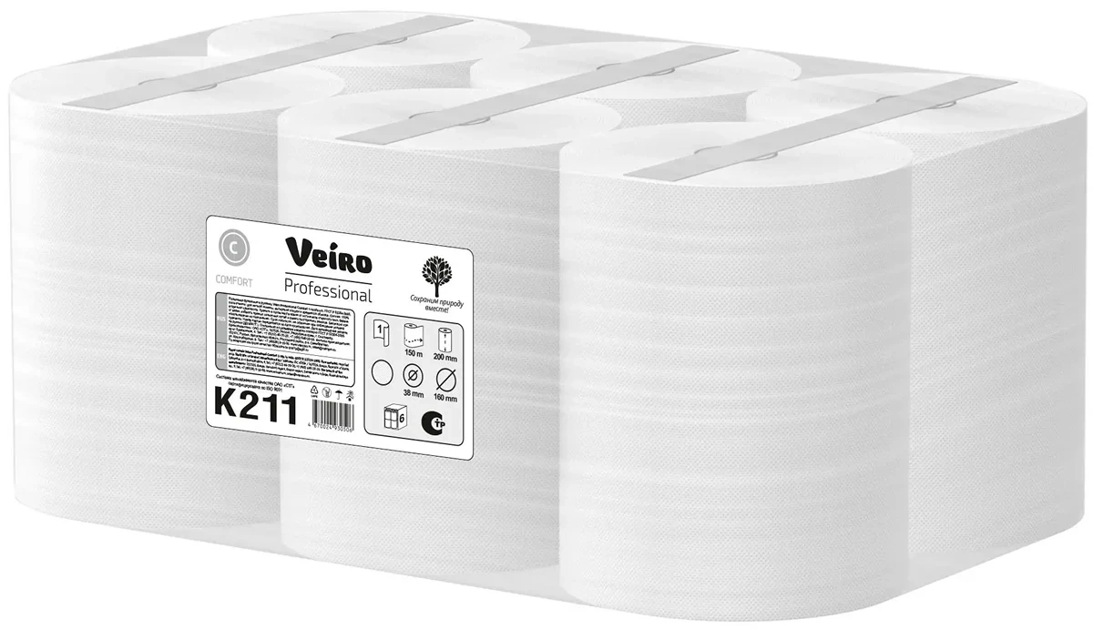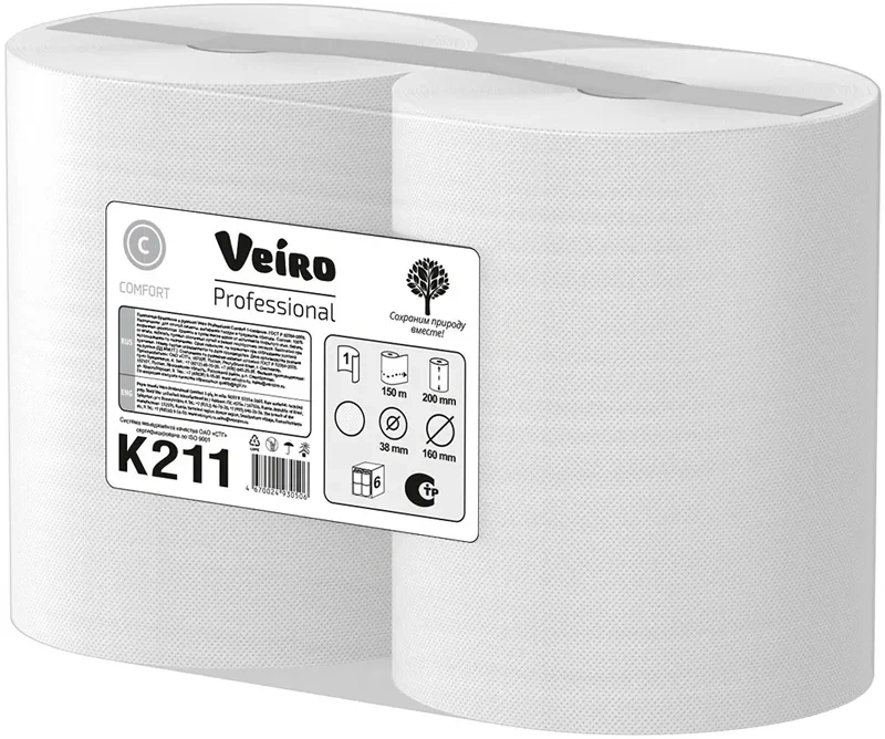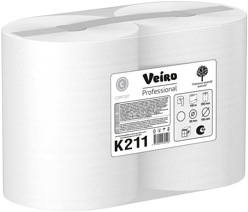 Бумажные полотенца Veiro Professional Comfort K211, 150м, 1 слой, белые