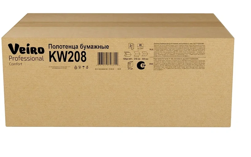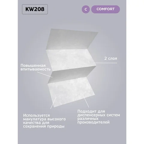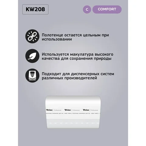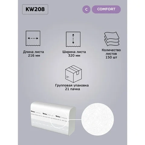 Бумажные полотенца Veiro Professional Comfort KW208, листовые, белые, W укладка, 150шт, 2 слоя