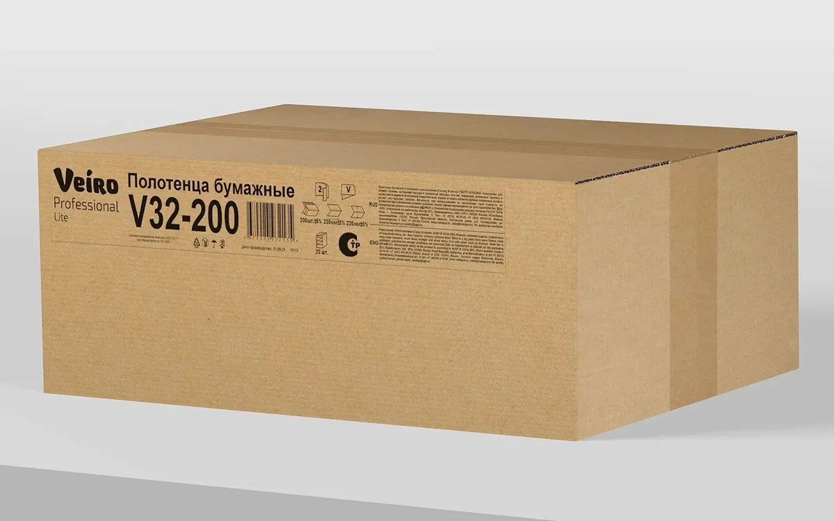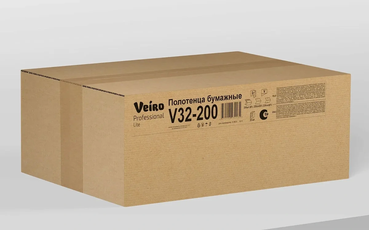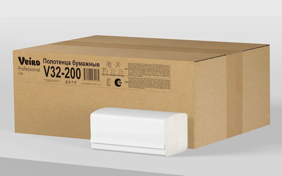 Бумажные полотенца Veiro Professional V32-200, листовые, белые, V укладка, 190шт, 2 слоя