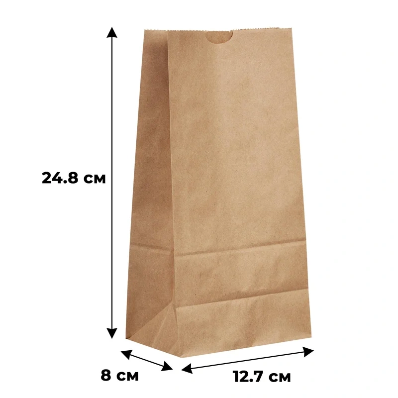 Пакет коричневый, крафт-бумага, 248х127х80 мм, 1000шт/уп