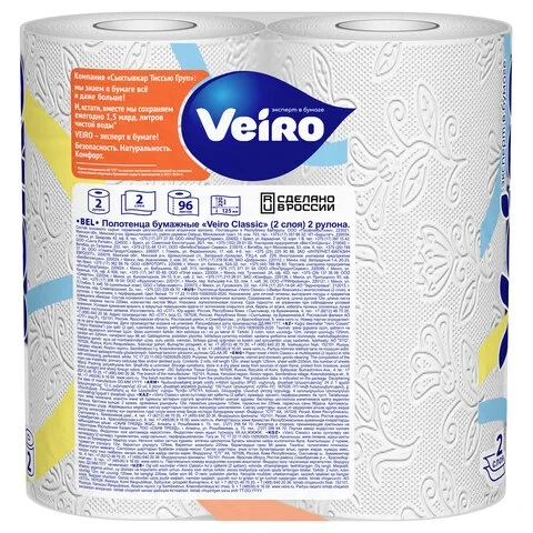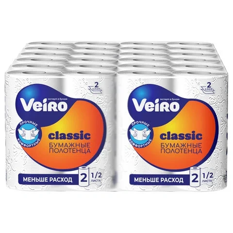 Бумажные полотенца Veiro Classic белые, 2 слоя, 2 рулона, 12,5м