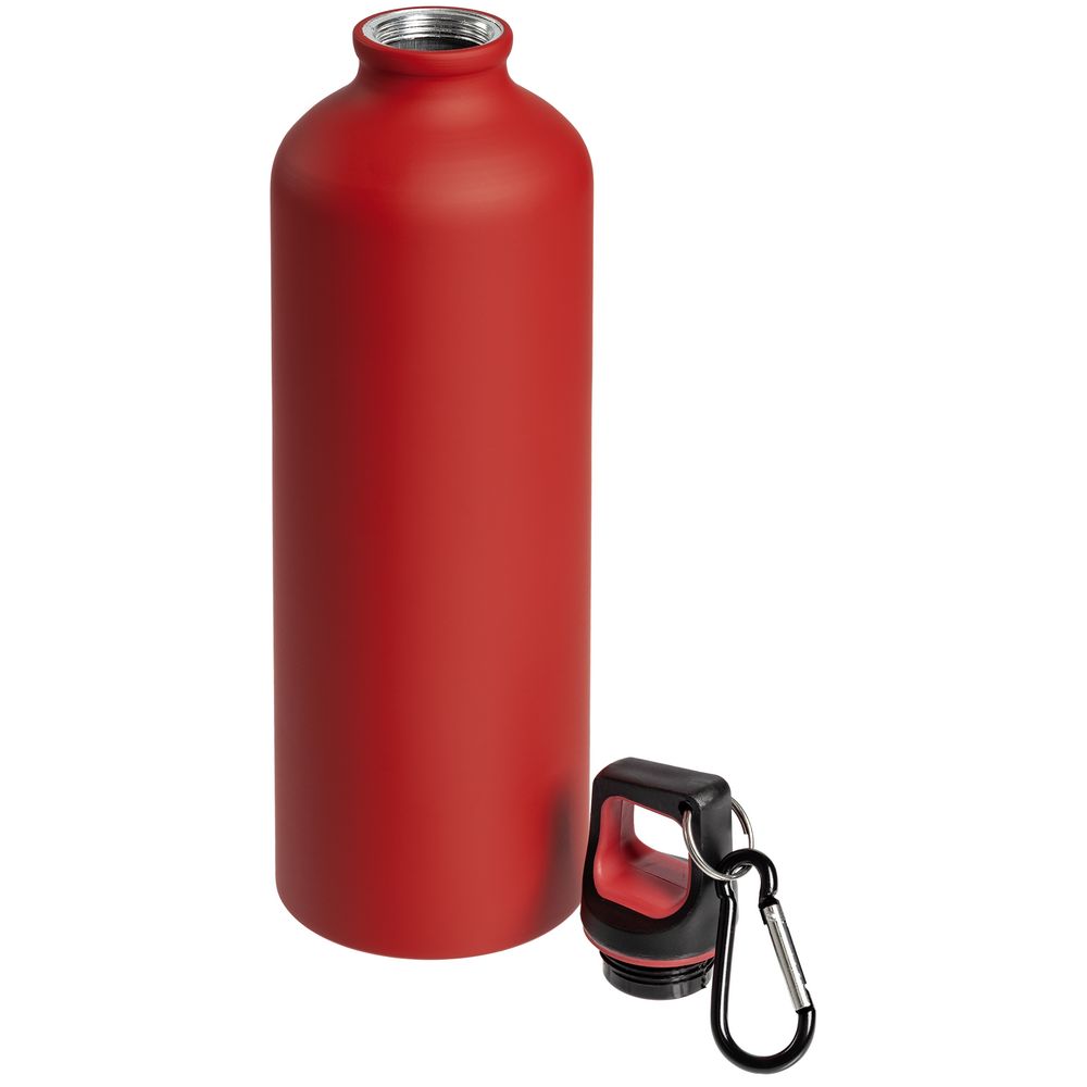 Емкость 800 мл. Легкая бутылка для воды с завинчивающейся пробкой, карабином и кольцом для ключей. Отлично подходит для занятий спортом и долгих прогулок. Цвет - красный. Размер: диаметр 7,3 см; высота 25,5 см. Материал: алюминий. Возможные виды нанесения: УФ-печать; Гравировка по окружности; Лазерная гравировка; Круговая УФ печать