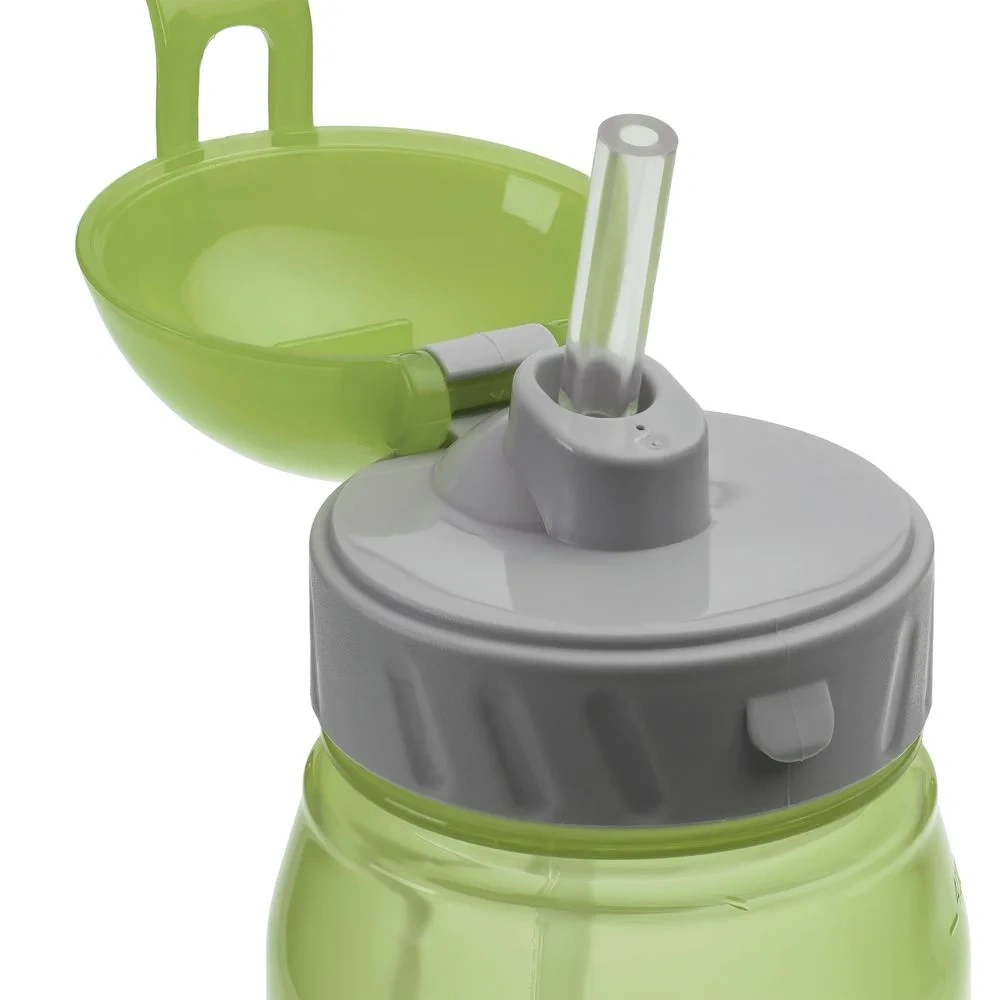Объем 400 млПодходит для детей старше 3 лет. Мерная шкала на корпусеНе содержит бисфенол АПодходит для большинства велосипедных держателей для бутылокШнурок-ланьярд в комплектеПодходит для напитков с температурой до 40CВозможен небольшой разнотон в поставке. Цвет - зеленый. Размер: диаметр 6,7 см; высота 18,3 см. Материал: корпус, крышка - полипропилен; трубочка - силикон. Возможные виды нанесения: Тампопечать
