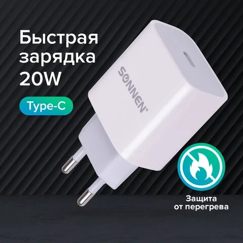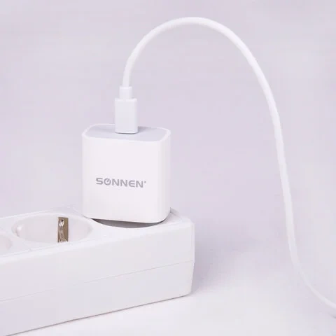 Быстрое зарядное устройство для iPhone (220В) SONNEN, порт Type-C, выходной ток 2A, белое, 455507