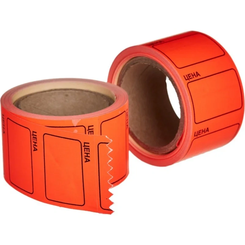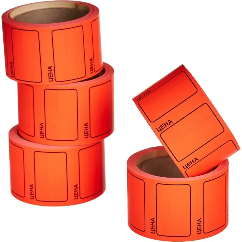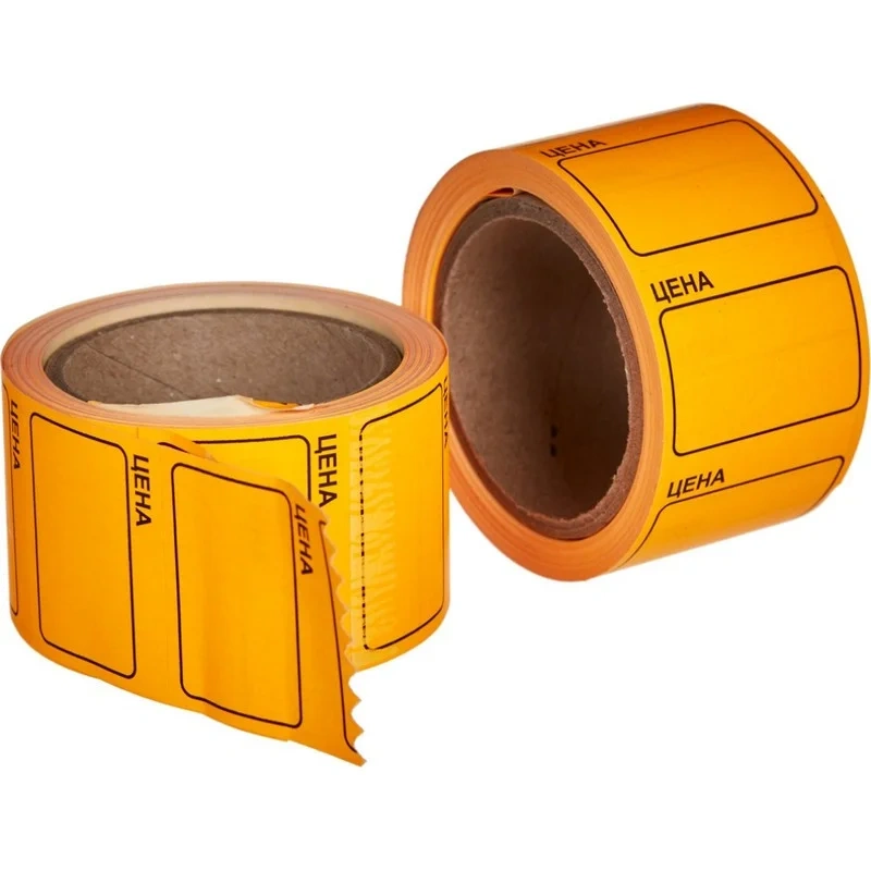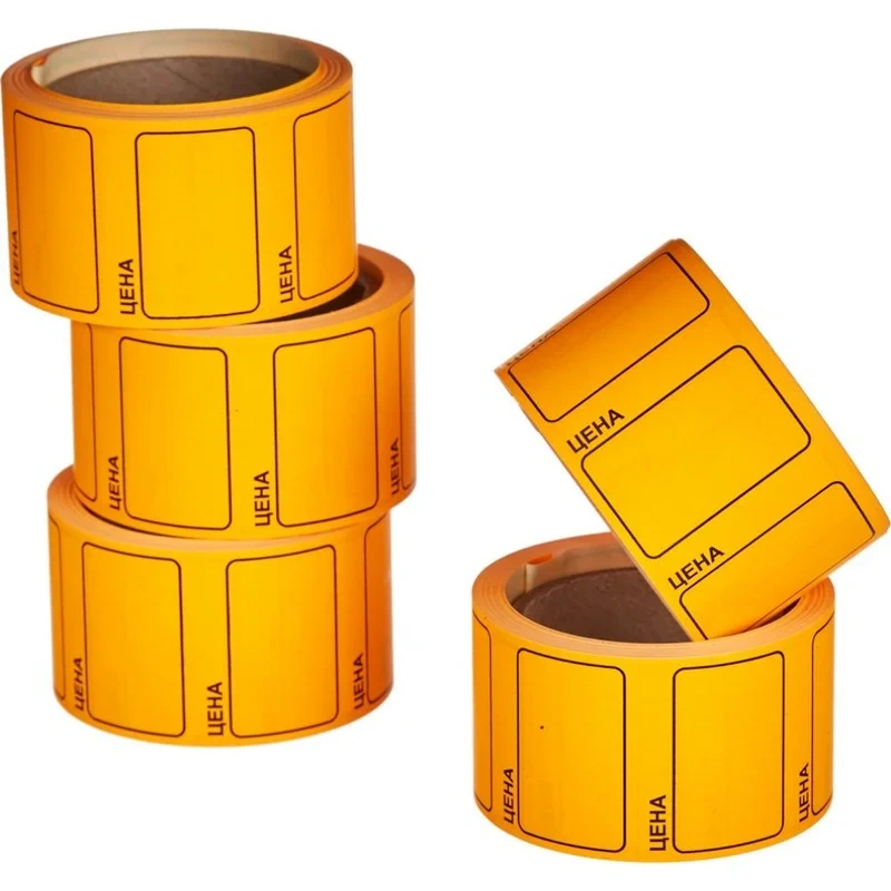 Ценники самоклеящиеся Цена 35x25мм, оранжевая 250шт/рул, 5 рул/уп