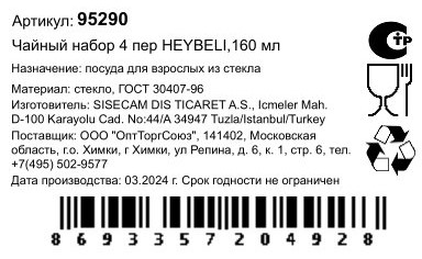 Набор чайный Pasabahce Heybeli 4 предмета, 160мл