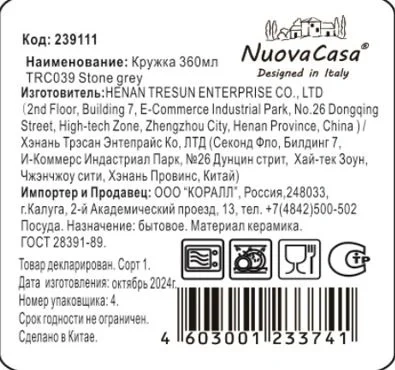 Кружка Nuovacasa Stone Grey, 360мл