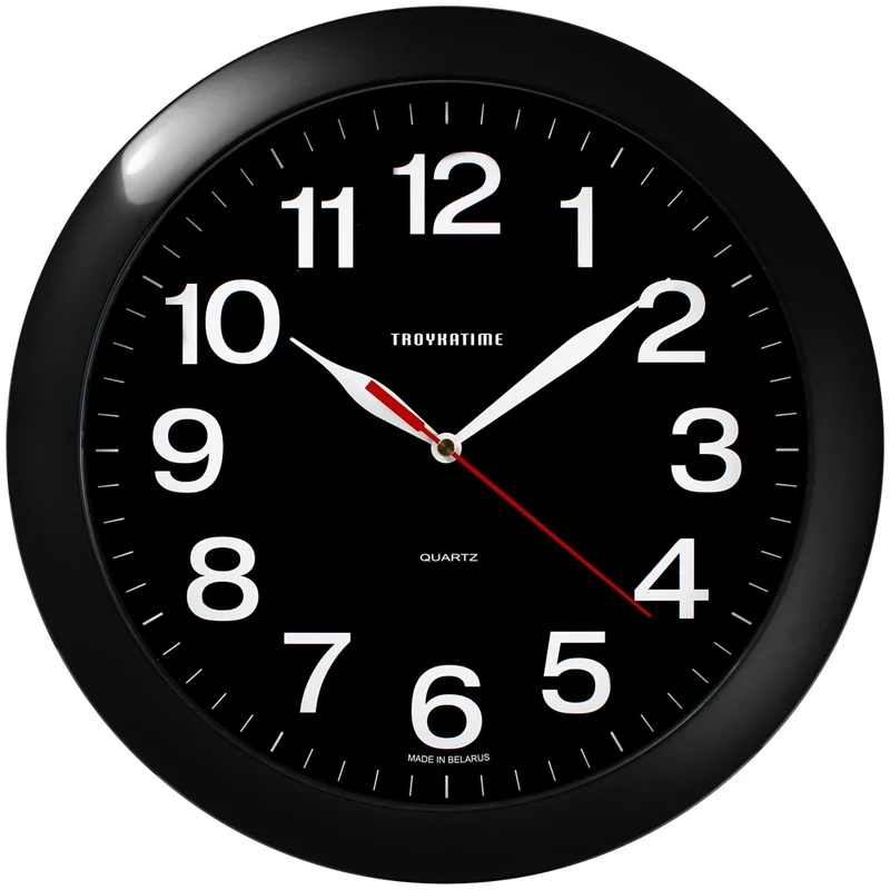 Часы настенные ход плавный, Troyka 11100196, круглые, 29*29*3,5, черная рамка