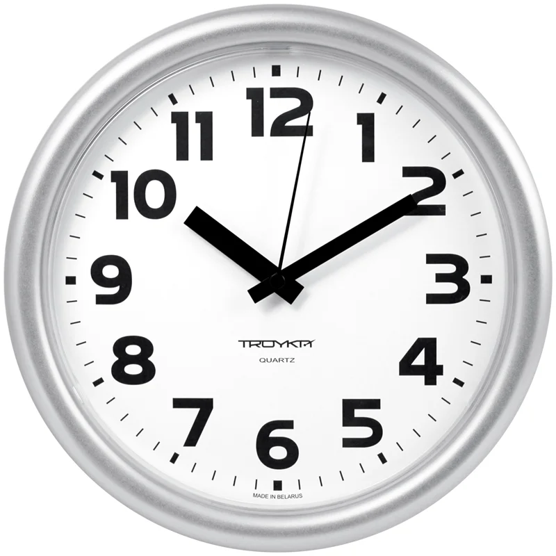 Часы настенные Troyka 21270216. Материал корпуса - пластик. Циферблат закрыт прочным пластиком. Механизм c плавным ходом. Диаметр - 240 мм. Часы работают от 1 элемента питания типа АА.