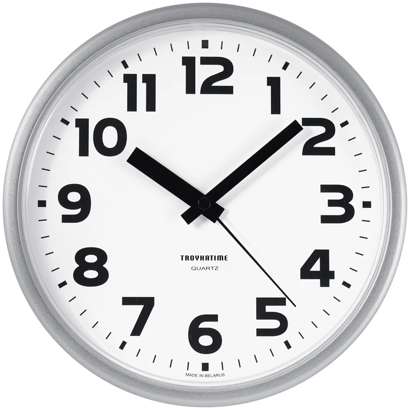 Часы настенные Troyka 91970945. Материал корпуса - пластик. Циферблат закрыт прочным пластиком. Механизм c плавным ходом. Диаметр - 230 мм. Часы работают от 1 элемента питания типа АА.