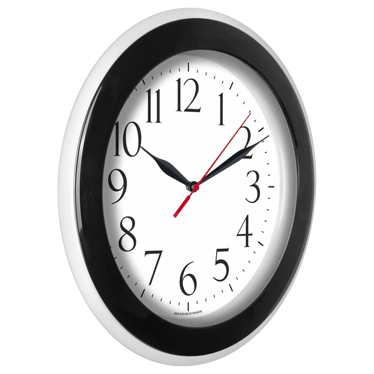 Часы настенные, модель 12, диаметр 300 мм, стекло пластик, пластиковый обод, цвет-прозрачный/черный.
