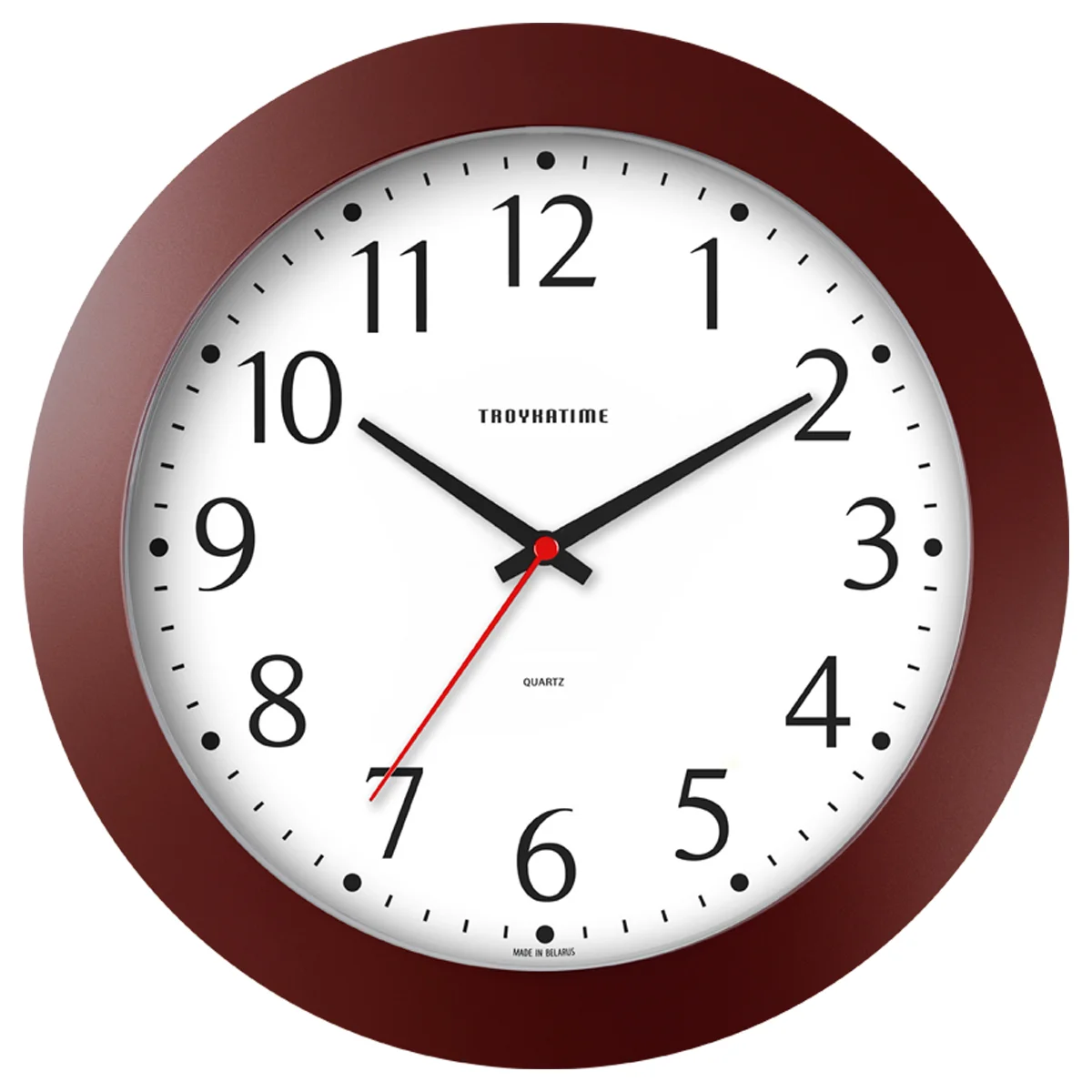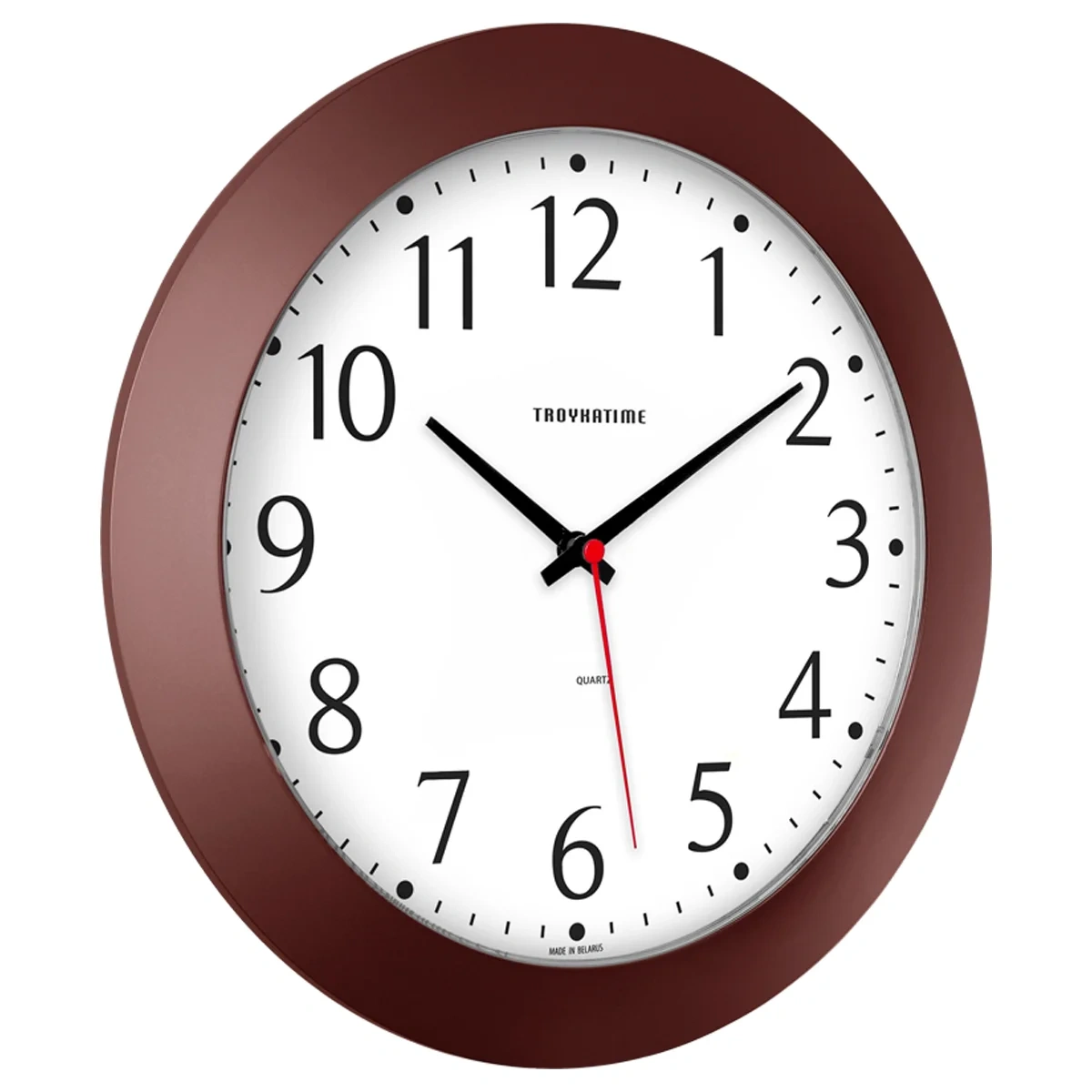 Часы настенные, модель 05, диаметр 305 мм, стекло пластиковое сферической формы, пластиковый ободок, цвет-коричневый.