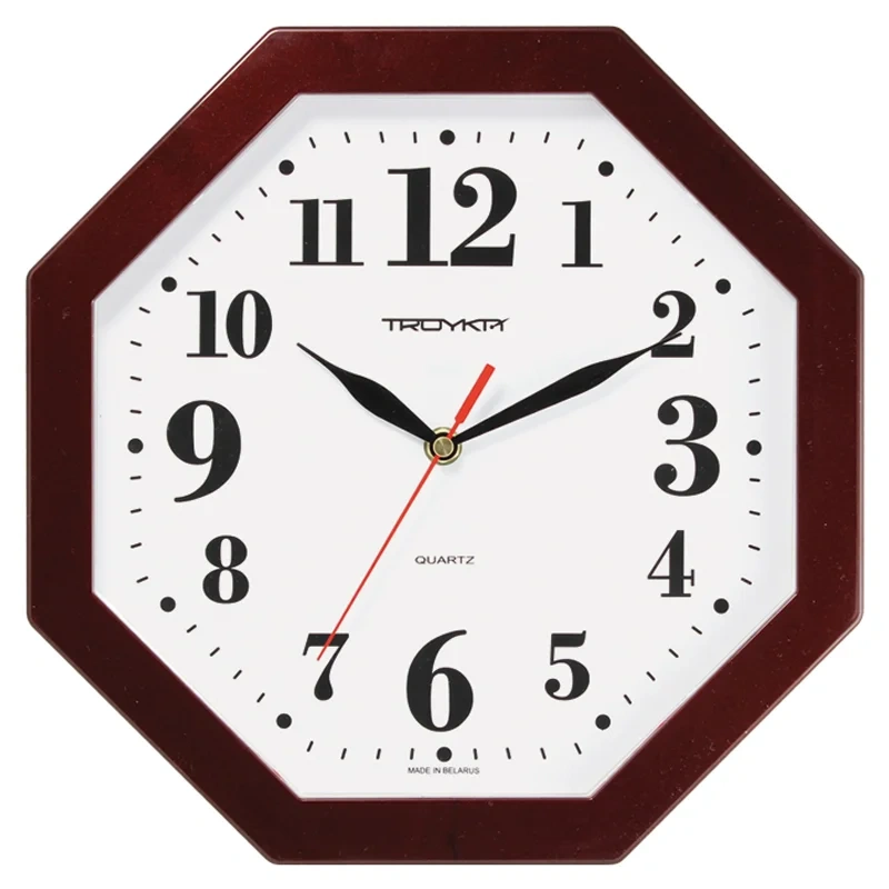 Настенные кварцевые часы 'Troyka', выполненные в классическом стиле, изготовленные из пластика, прекрасно подойдут под интерьер вашего дома. Многоугольные часы имеют три стрелки: часовую, минутную и секундную, циферблат защищен минеральным стеклом.