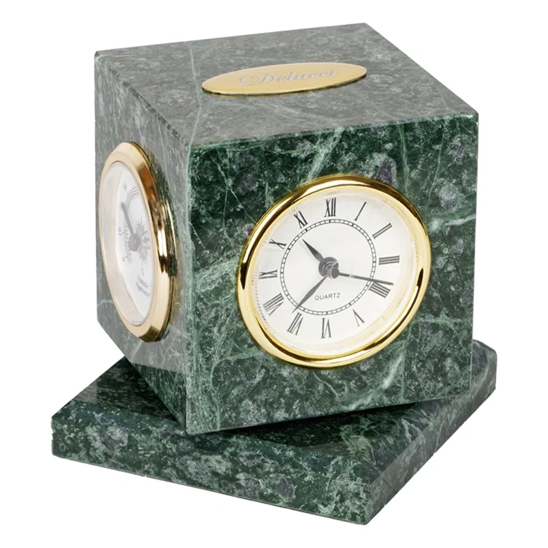 Настольные часы Delucci зеленый мрамор, с термометром и гигрометром