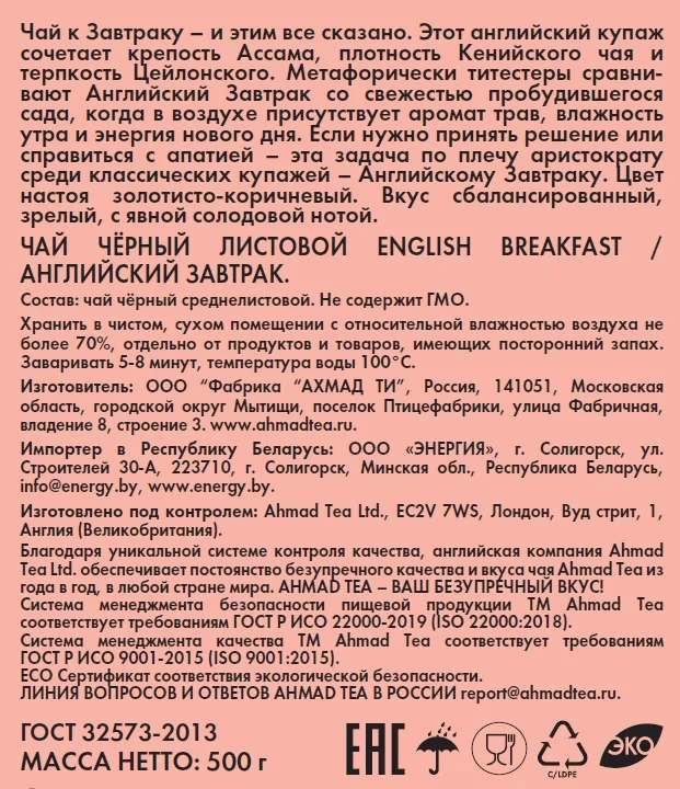 | Фирма-производитель | ahmad tea ltd. |