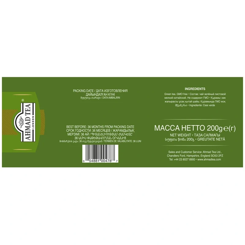 Чай зеленый Ahmad Green Tea 100 пакетиков. Чай Ahmad Tea Green — это смесь из отборных верхних листьев высококачественного китайского зеленого чая. Напиток характеризуется пониженным содержанием кофеина. Чай имеет густой аромат и насыщенный вкус. Оказывает тонизирующее и общеукрепляющее действие.
