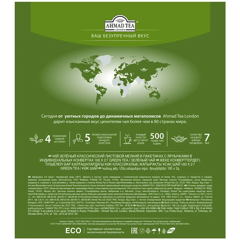 Чай Ahmad Green Tea (Зеленый Чай), зеленый, 100 пакетиков