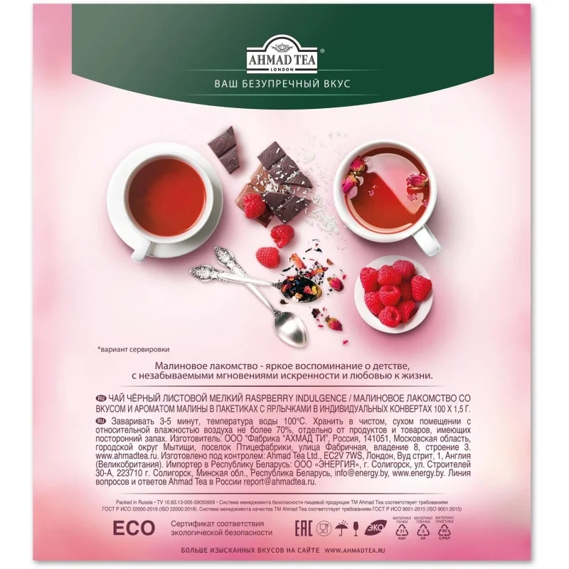 Чай Ahmad Малиновое Лакомство, черный, 100 пакетиков