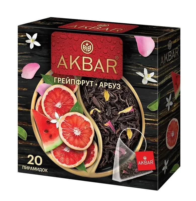 Чай Akbar Грейпфрут и арбуз, черный, 20 пирамидок
