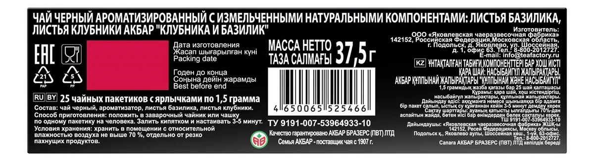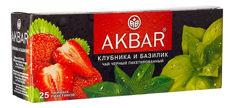 Чай Akbar Клубника и Базилик черный, 25 пакетиков