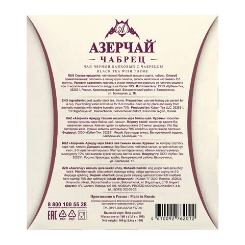 Чай Азерчай Армуду Чабрец, черный, 100 пакетиков