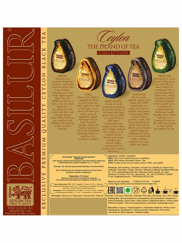 Чай Basilur The island of tea Gold, черный, 100 пакетиков