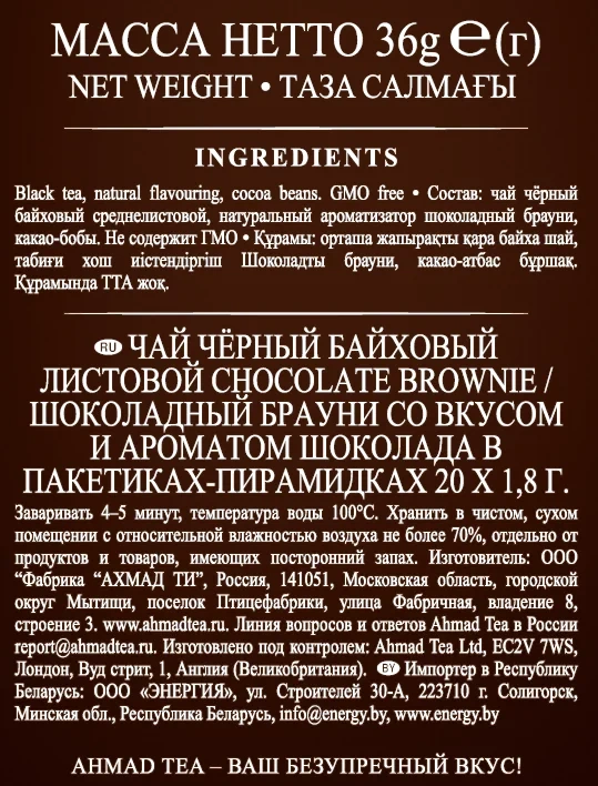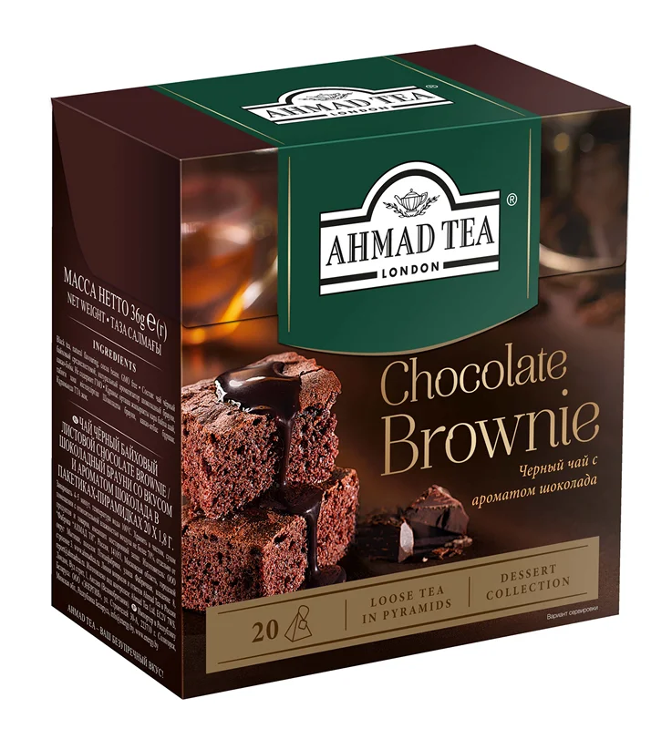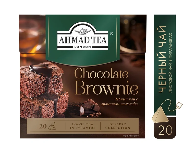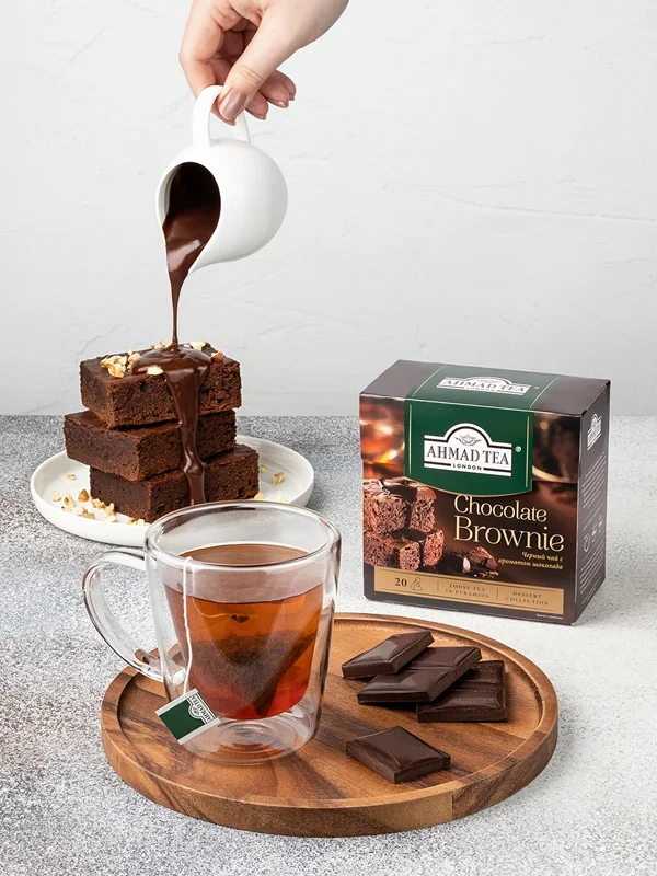 Чай Ahmad Chocolate Brownie с шоколадом, черный, 20 пирамидок
