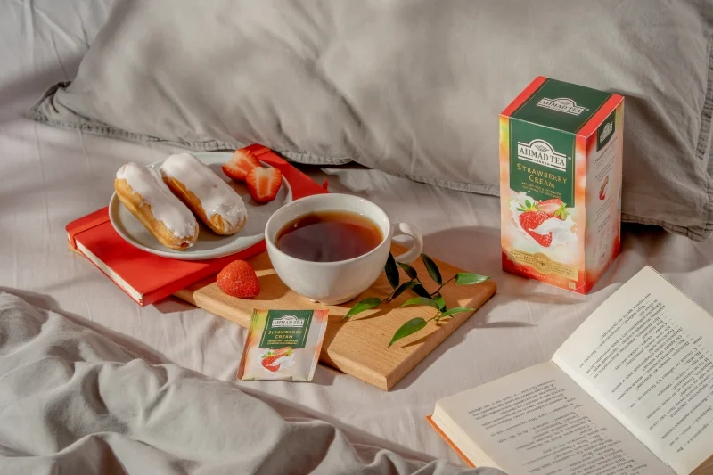Сочетание клубники со сливками — классический десертный дуэт, в котором главную ноту играет клубника в томном сливочном соусе. В этом купаже вкус черного цейлонского чая дополнен сладкими ванильными нотами.Заваривать 3-5 минут, температура воды 100С. Горячий напиток очарует характерным терпким, слегка сладковатым вкусом, обладает полезными свойствами для организма человека, содержит танин, флавоноиды, микроэлементы, повышает работоспособность. Быстро заваривается. Для усиления вкуса добавьте в чашку кусочек лимона, апельсина, молоко или сливки.