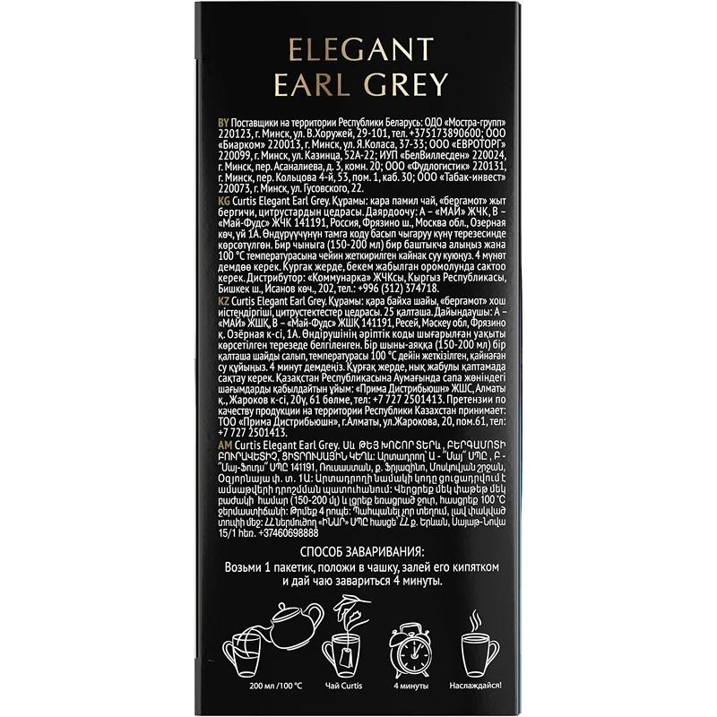 Чай Curtis черный Elegant Earl Grey,ароматизированный,мелкий лист, 25шт/уп