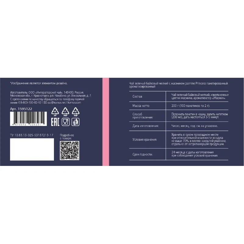 Чай Деловой Стандарт Jasmine Princess, зеленый с жасмином, 100 пакетиков