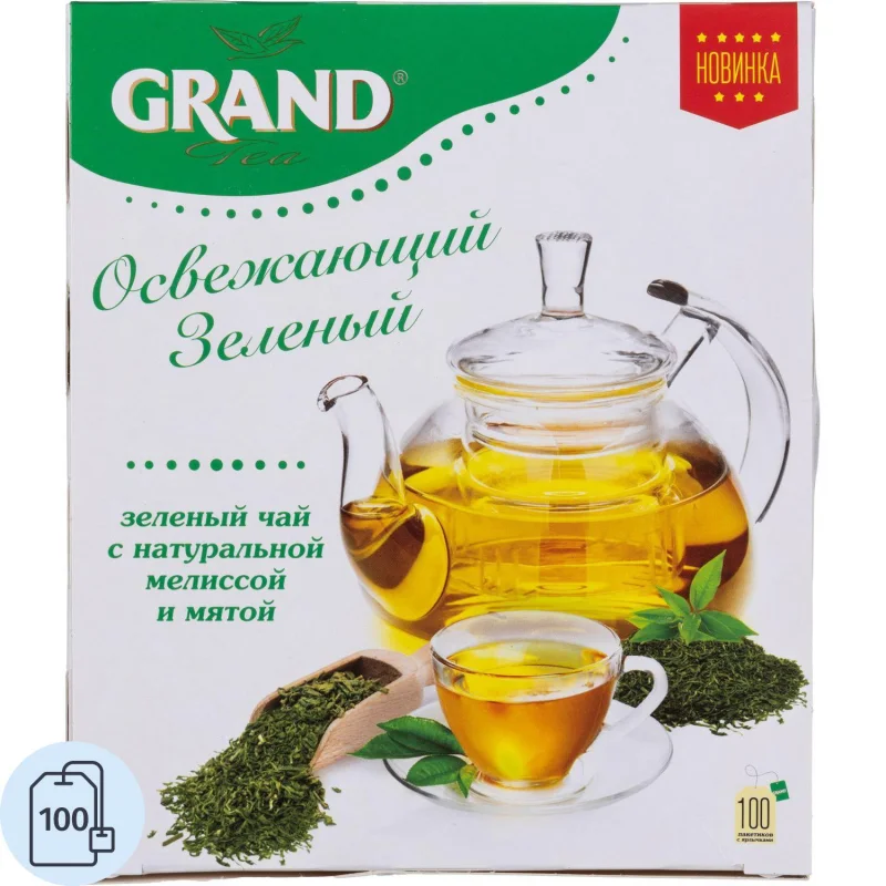 Чай Grand Освежающий, зеленый, 100 пакетиков