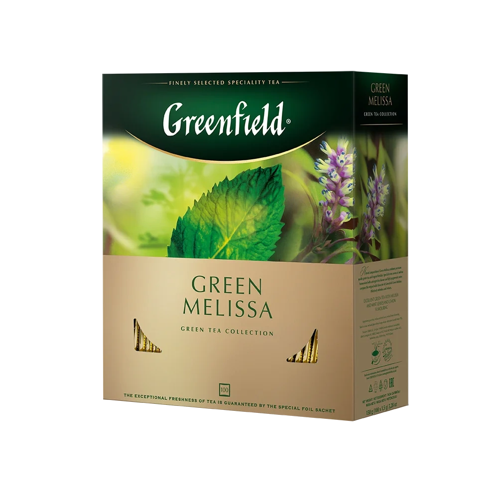 Чай Greenfield Green Melissa (Грин Мелисса), зеленый, 100 пакетиков
