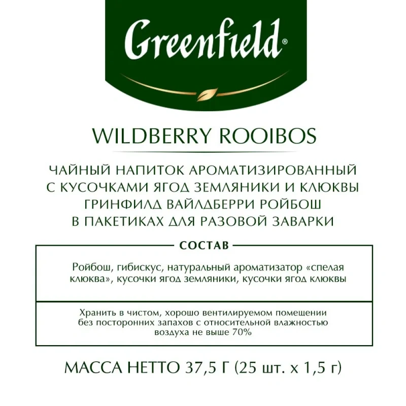Чай Greenfield Wildberry Rooibos (Вайлдберри Ройбош), травяной, 25 пакетиков