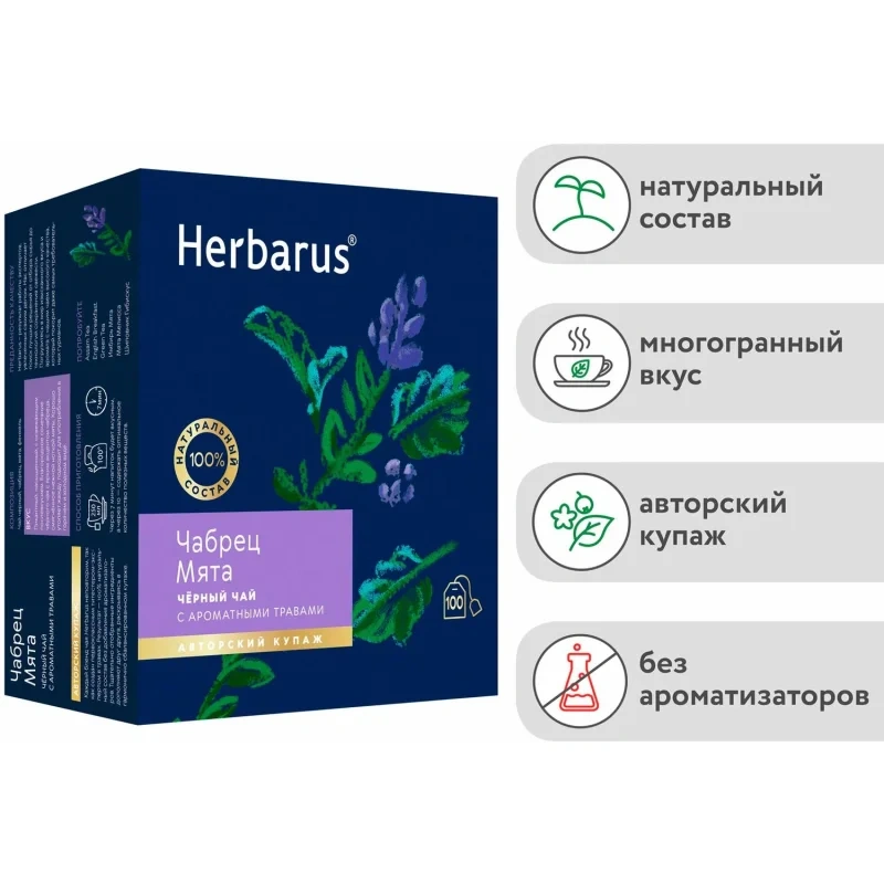 Чай Herbarus Чабрец Мята, черный, 100 пакетиков