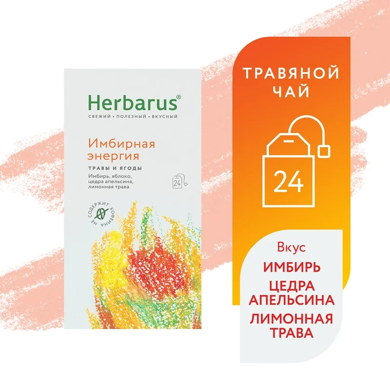 Чай Herbarus Имбирная Энергия, травяной, 24 пакетика