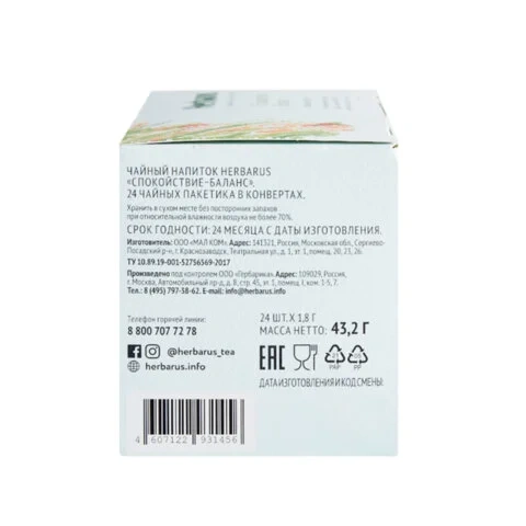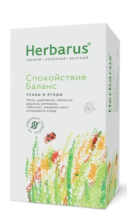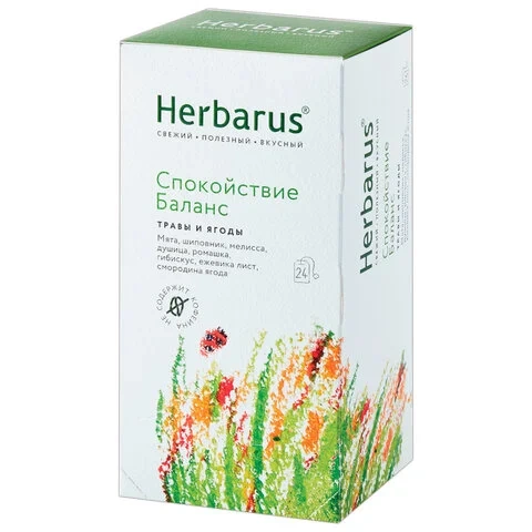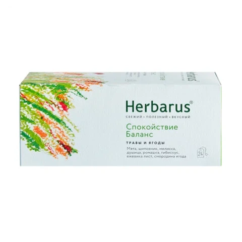 Чайный напиток ягодный травяной Herbarus Спокойствие баланс 24 пакетика. Чайный напиток Herbarus «Спокойствие Баланс» 24 пакетика по 1.8 грамма — это приятное пожелание на каждом ярлыке пакетика. Сочетается с цукатами, медом, корицей. Успокаивает нервную систему, нормализует сон, понижает давление, питает витаминами и микроэлементами. Можно пить в любое время дня. Прекрасен после напряженного дня.