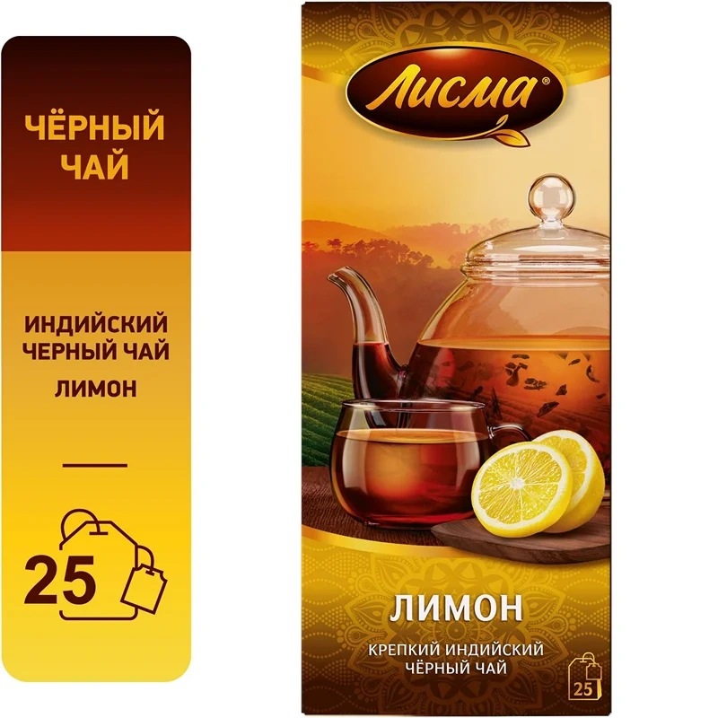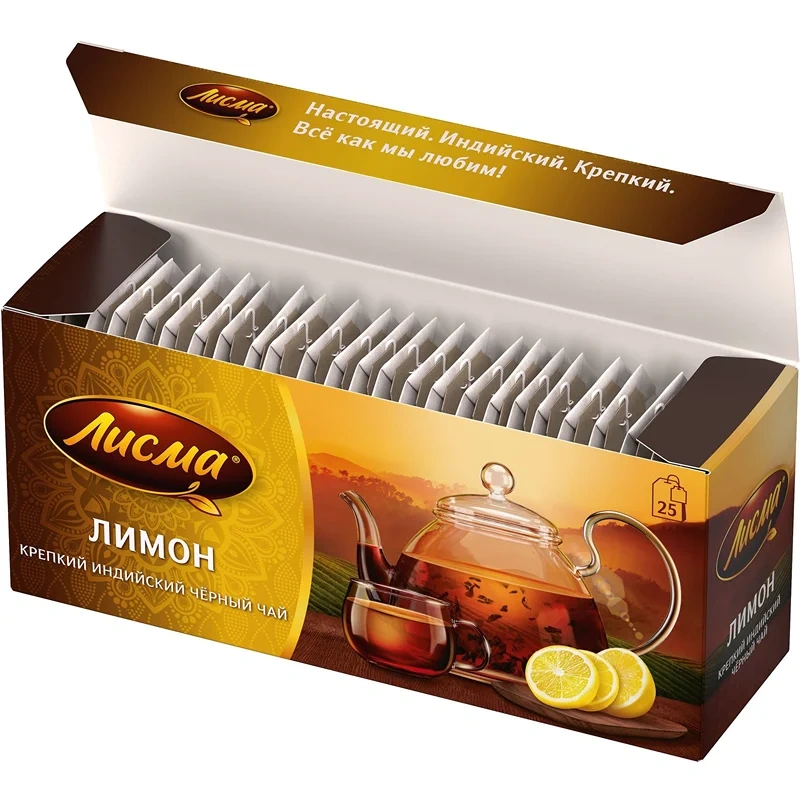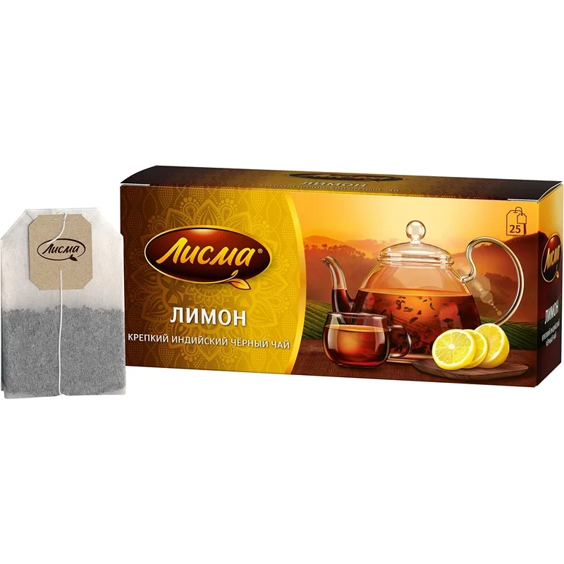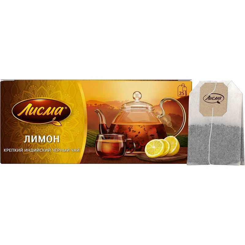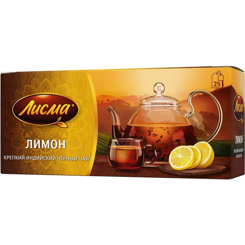 Чай Лисма 'Лимон Крепкий', черный ароматизированный, 25 пакетиков. Описание бренда: Настоящий. Индийский. Крепкий. Всё как мы любим! Черный индийский чай в сочетании со свежим ароматом лимона. Описание бренда: Настоящий. Индийский. Крепкий. Всё как мы любим! Лисма - это черный чай с крепким насыщенным вкусом и ароматом, ежедневный источник бодрости и хорошего настроения. Это надежный выбор по доступной цене, ведь Лисма производится с соблюдением контроля качества на всех этапах.